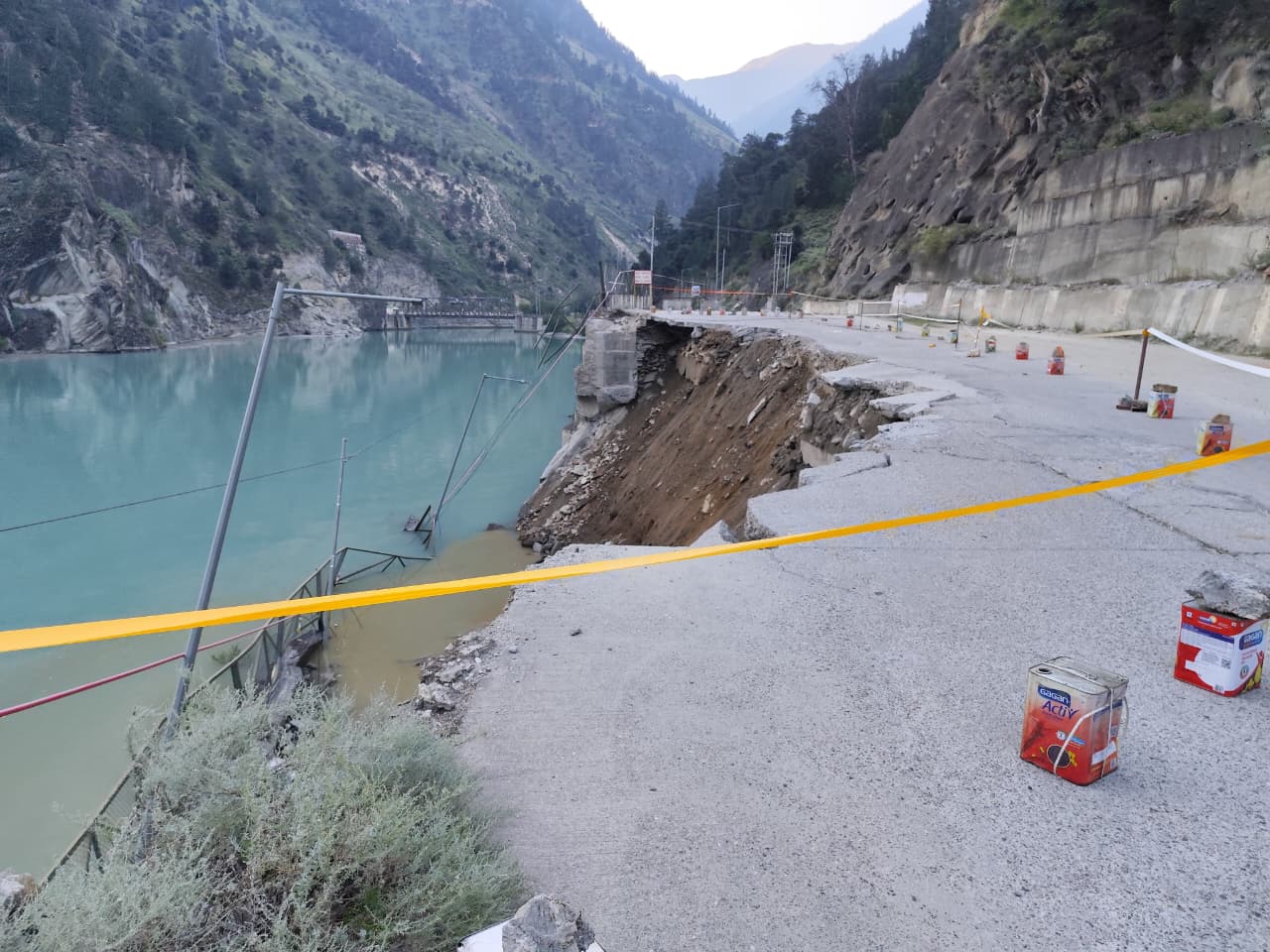 जिला किन्नौर में करछम-सांगला-छितकुल सड़क मार्ग एक बार फिर हादसों की जद में आ गया है। बुधवार देर रात करीब 11 बजे करछम स्थित विद्युत परियोजना की डैम साइट के नजदीक सड़क का बड़ा हिस्सा धंस गया। सड़क पर चौड़ी दरारें आने से वाहनों की आवाजाही खतरे में पड़ गई है।