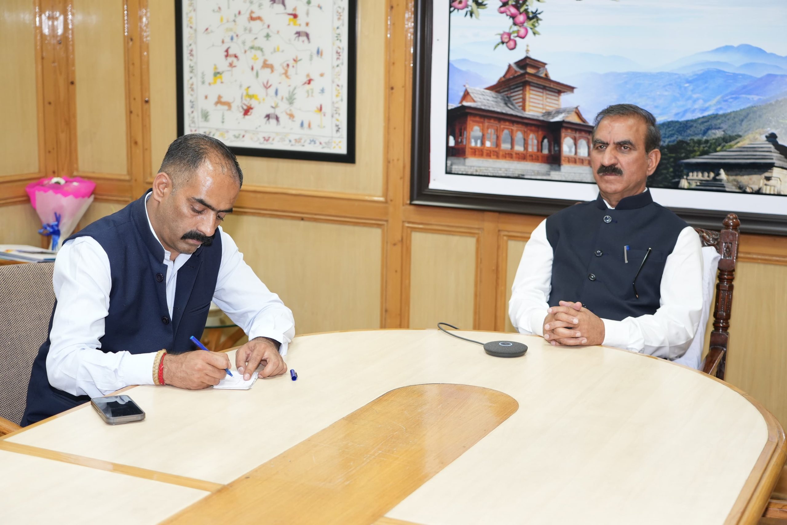 बैठक में ग्रामीण विकास एवं पंचयाती राज मंत्री अनिरूद्ध सिंह शिमला में उपस्थित रहे तथा उपायुक्त हमीरपुर अमरजीत सिंह व अन्य वरिष्ठ अधिकारी हमीरपुर से वर्चुअली जुड़े।