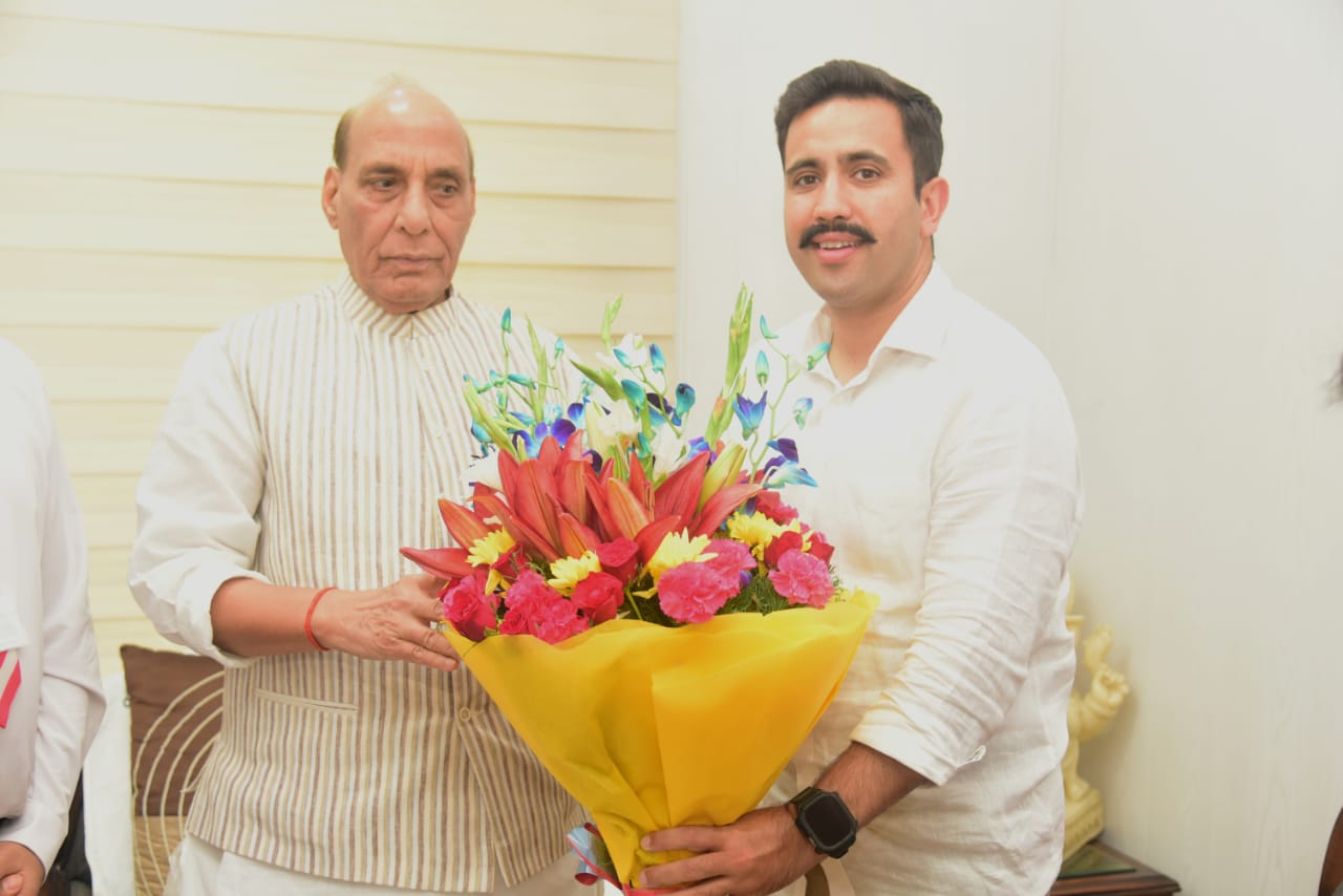 लोक निर्माण मंत्री विक्रमादित्य सिंह ने सोमवार सायं दिल्ली में केन्द्रीय रक्षा मंत्री राजनाथ सिंह से भेंट की।