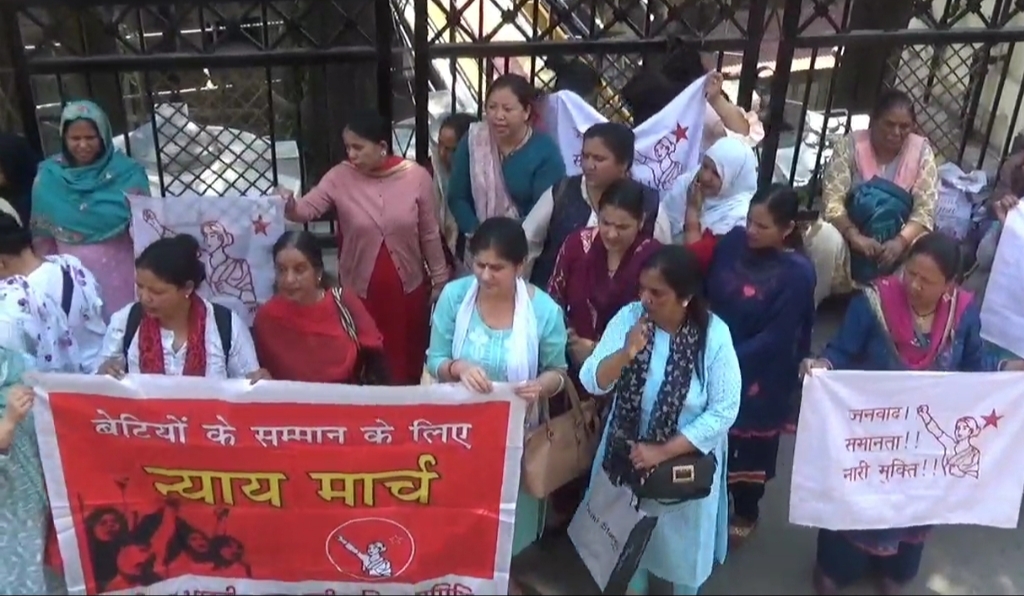 अखिल भारतीय जनवादी महिला समिति ने देश में महिलाओं के साथ हो रहे अत्याचार व यौन शोषण के खिलाफ उपायुक्त कार्यालय शिमला के बाहर धरना प्रदर्शन किया। महिला समिति का कहना है कि दोषियों के खिलाफ सख्त कार्यवाही करने के बजाय केंद्र की भाजपा सरकार ऐसे लोगों को संरक्षण दे रही है। जनवादी महिला समिति की राज्य सचिव फालमा चौहान ने बताया कि देश व प्रदेश में महिलाओं व छोटी बच्चियों के साथ यौन शौषण के अपराध बढ़ रहे हैं। उन्होंने कहा कि कर्नाटक का आरोपी जेडीएस सांसद परज्ज्वल रेवन्ना खुलेआम देश के बाहर घूम रहा है। महिला पहलवानों के आरोपो के बाद भी बीजेपी सांसद बृजभूषण पर कोई ठोस कार्यवाही नही की। फालमा चौहान ने कहा कि आज मंदिरों और स्कूलों के अंदर भी छोटी बच्चियों से यौन शौषण की घटनाएं देखने को मिल रही है। जनवादी महिला समिति सरकार से दोषियों के खिलाफ सख्त कार्यवाही की मांग करती हैं।