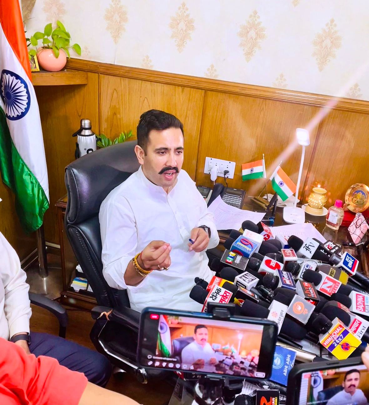 लोक निर्माण एवं शहरी विकास मंत्री विक्रमादित्य सिंह ने आज यहां मीडिया कर्मियों को सम्बोधित करते हुए प्रदेश में आपदा से हुए नुकसान, क्षतिग्रस्त पुलों एवं सड़कों के बारे में जानकारी दी।